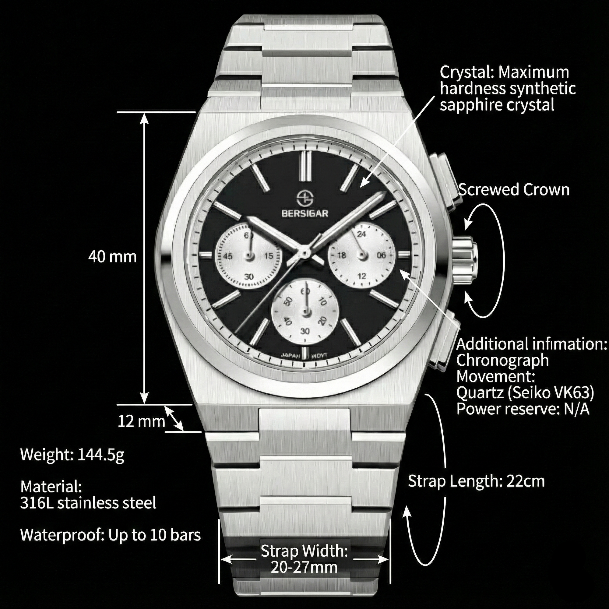 Every watch we sell has undergone multiple rigorous factory inspection procedures, we guarantee that every watch is flawless, and is backed by a two-year warranty from the date of purchase. If your watch fails within two years, we will repair or replace your watch for free.