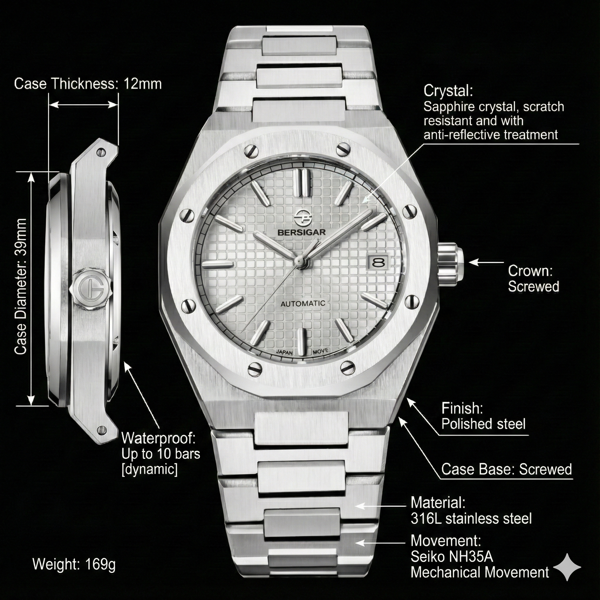 Strongest Luminous on BERSIGAR WATCHES watches ever, they can emit very strong light in the dark after exposing under the sunlight, you will never miss your time even in the night.