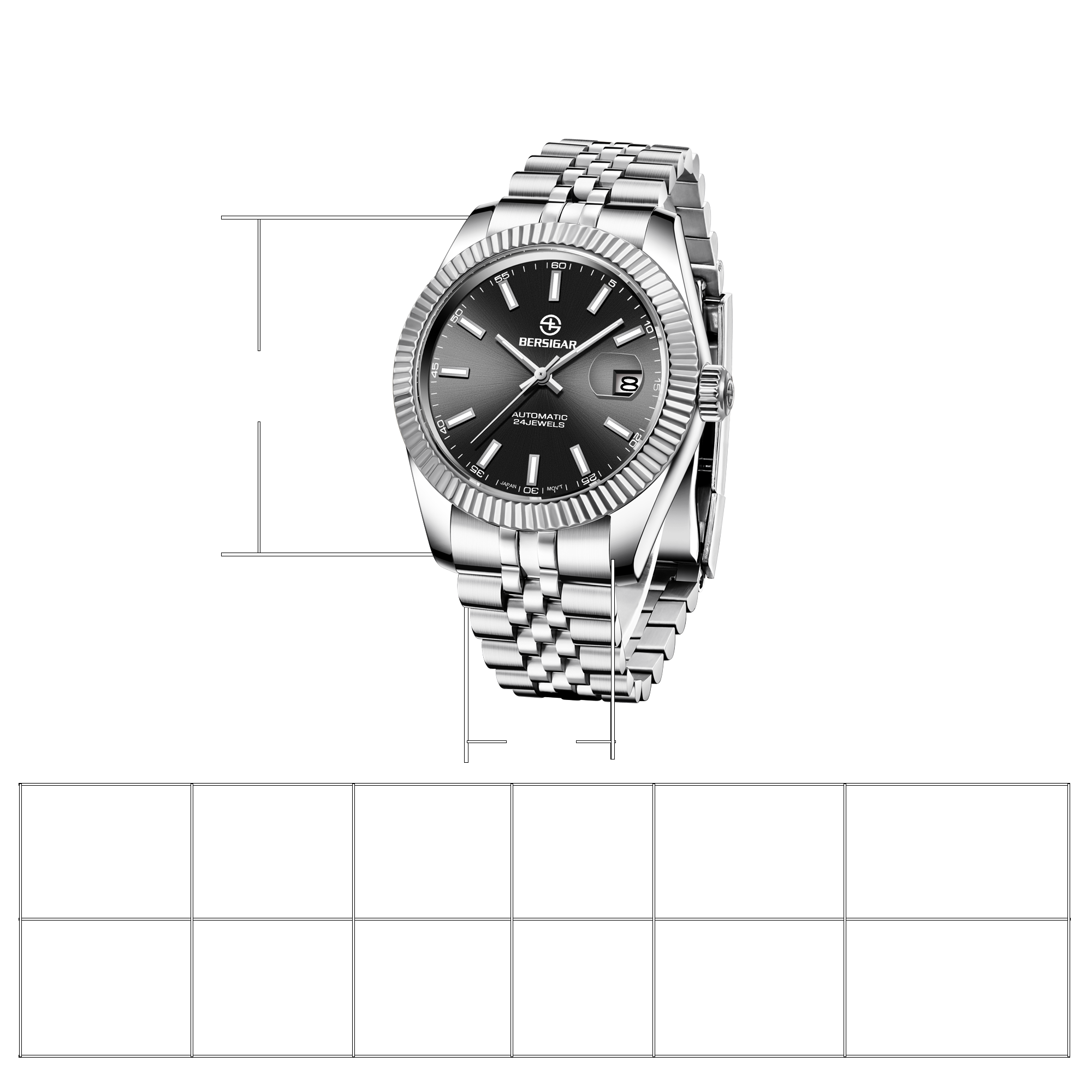 Materiales de primera calidad y diseño informal, ventana de esfera de zafiro, construcción completa de acero inoxidable 316L con corona atornillada, fondo de caja transparente, correa de reloj sólida y flexible con cierre desplegable clásico.