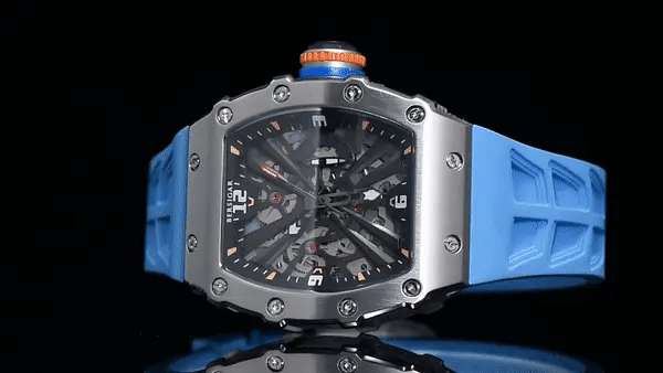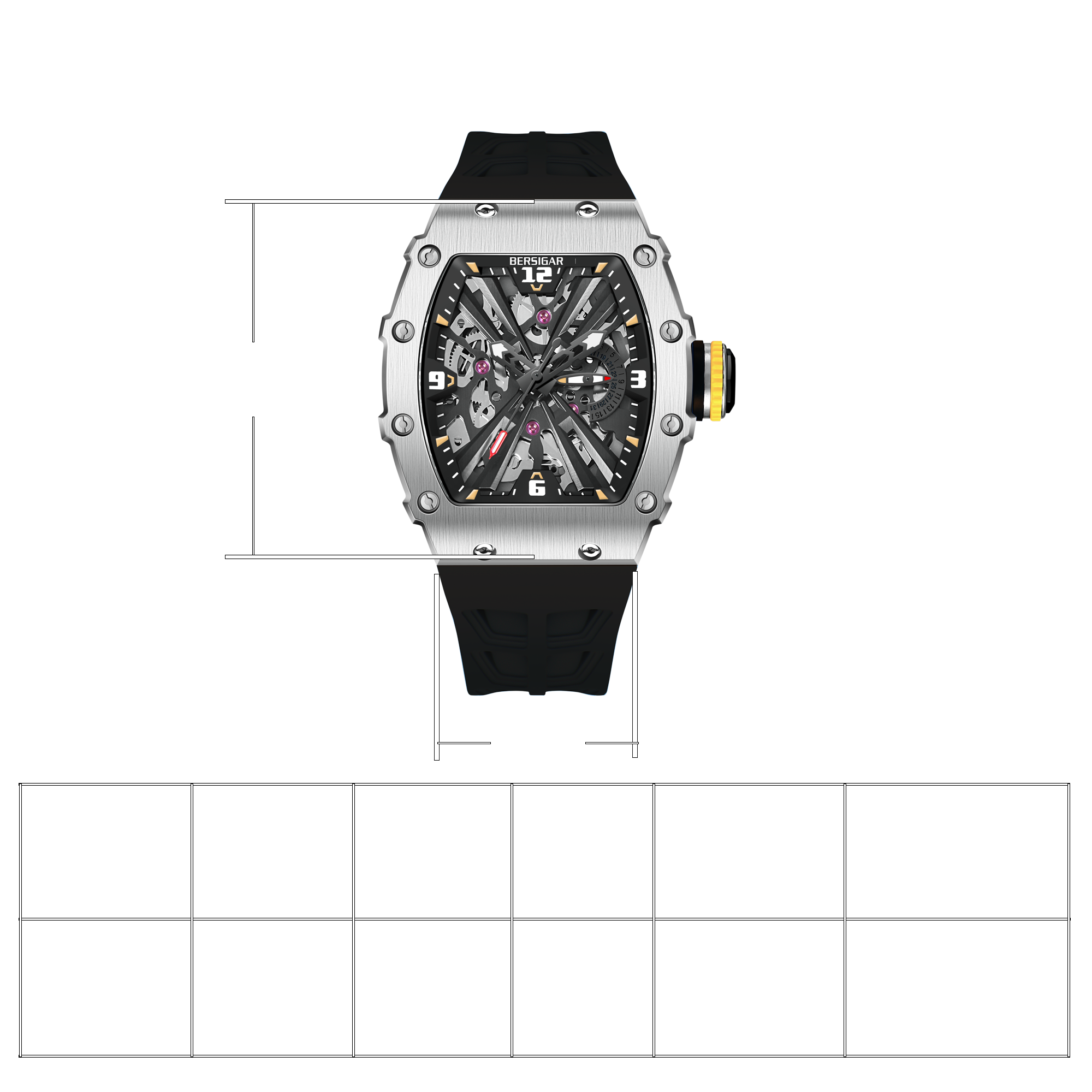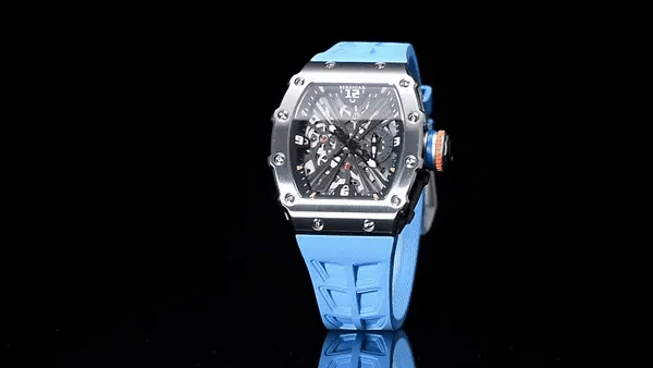 Materiali premium e design casual, vetro del quadrante in zaffiro, costruzione in acciaio inossidabile, retro del caso solido, cinturino orologio morbido e resistente in gomma con fibbia classica.