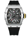 Materiali premium e design casual, vetro del quadrante in zaffiro, costruzione in acciaio inossidabile, retro del caso solido, cinturino orologio morbido e resistente in gomma con fibbia classica.
