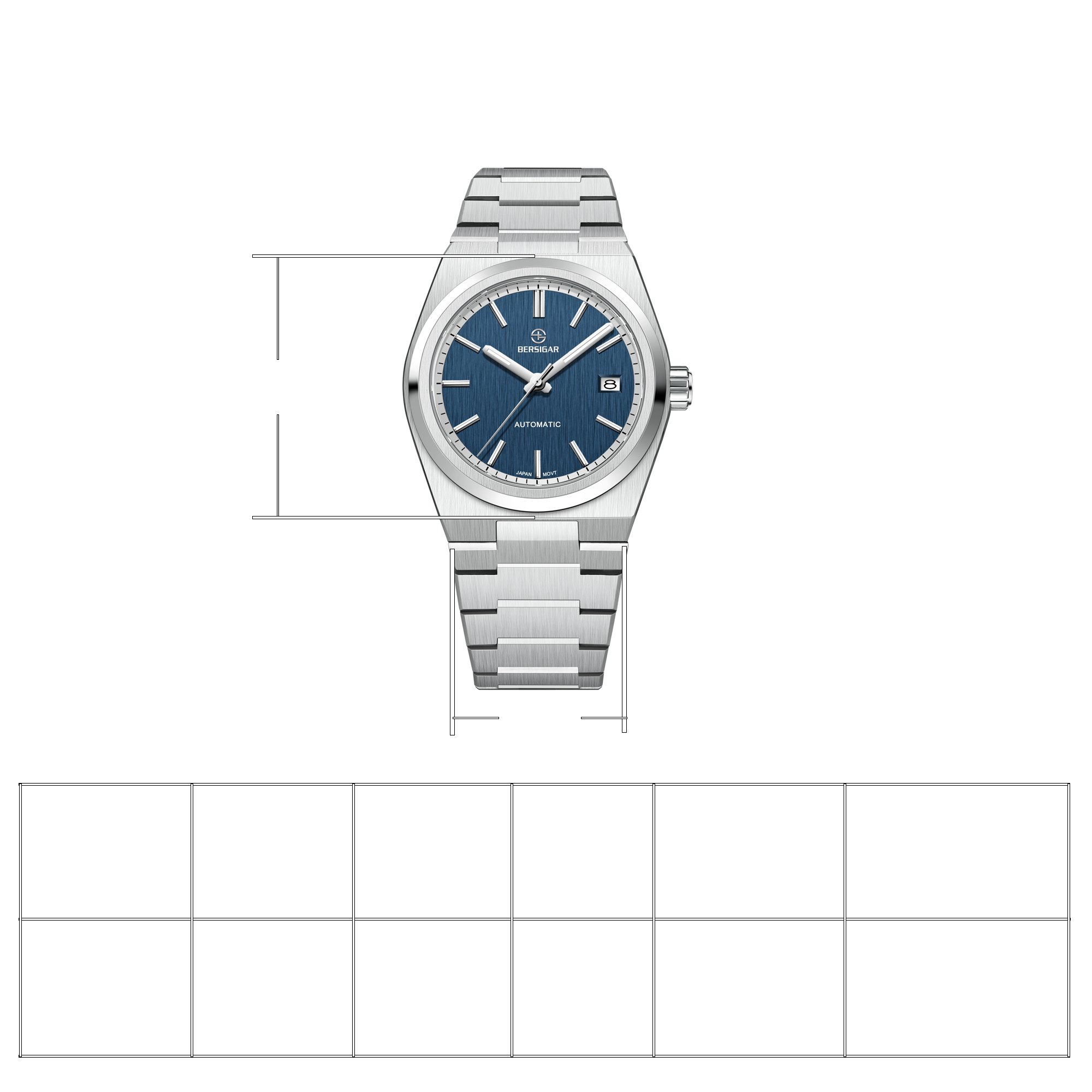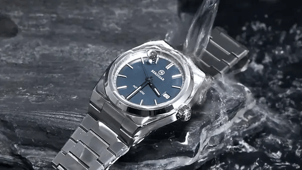 Materiali premium e design casual, vetro del quadrante in zaffiro, costruzione in acciaio inossidabile con corona a vite e fondo cassa solido, cinturino robusto e flessibile con classica chiusura a farfalla.