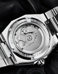 Premium materialen en casual ontwerp, saffierglas, volledige constructie van 316L roestvrij staal met schroefkroon, transparante achterkant, solide en flexibele hordeband met klassieke vouwsluiting