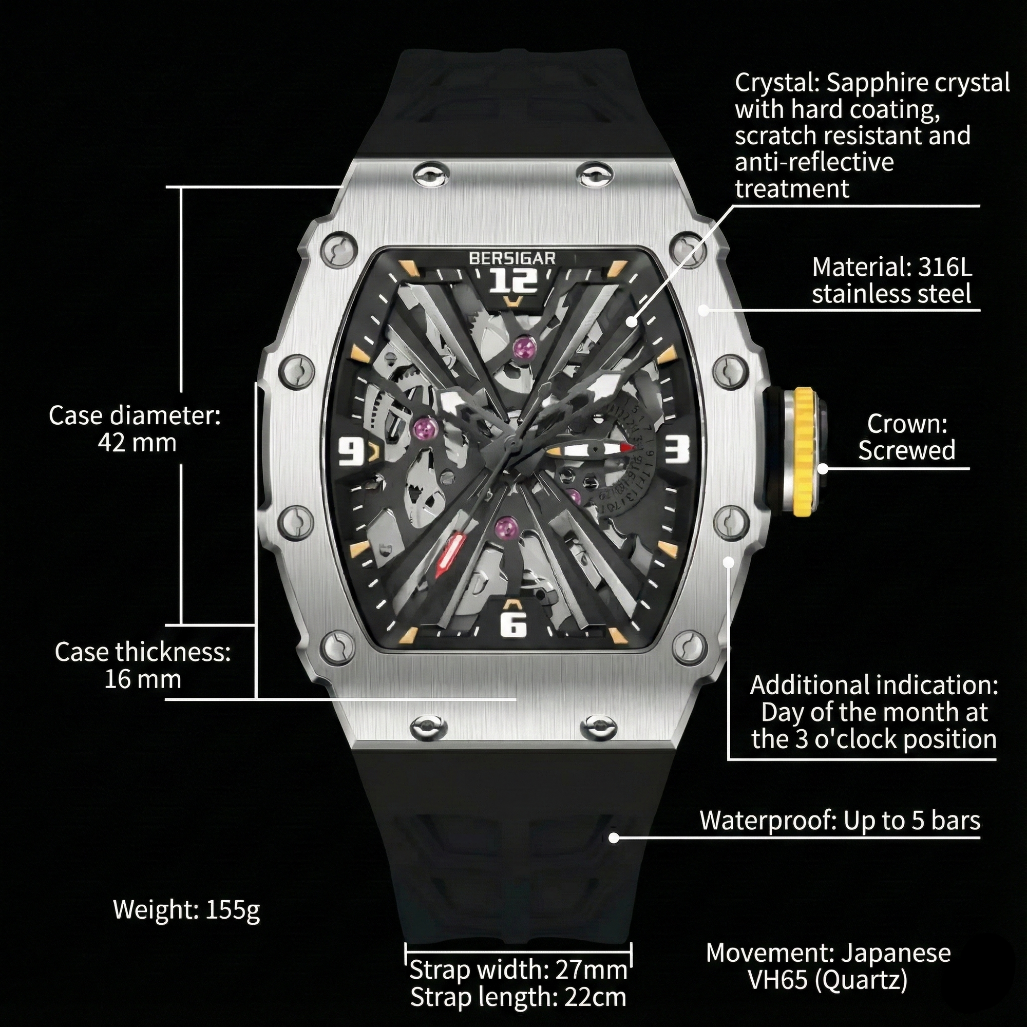 Quality Japanese VH65 quartz movement, very accurate timekeeping, Its architecture, manufacturing, and innovative features make it exceptionally precise and reliable.