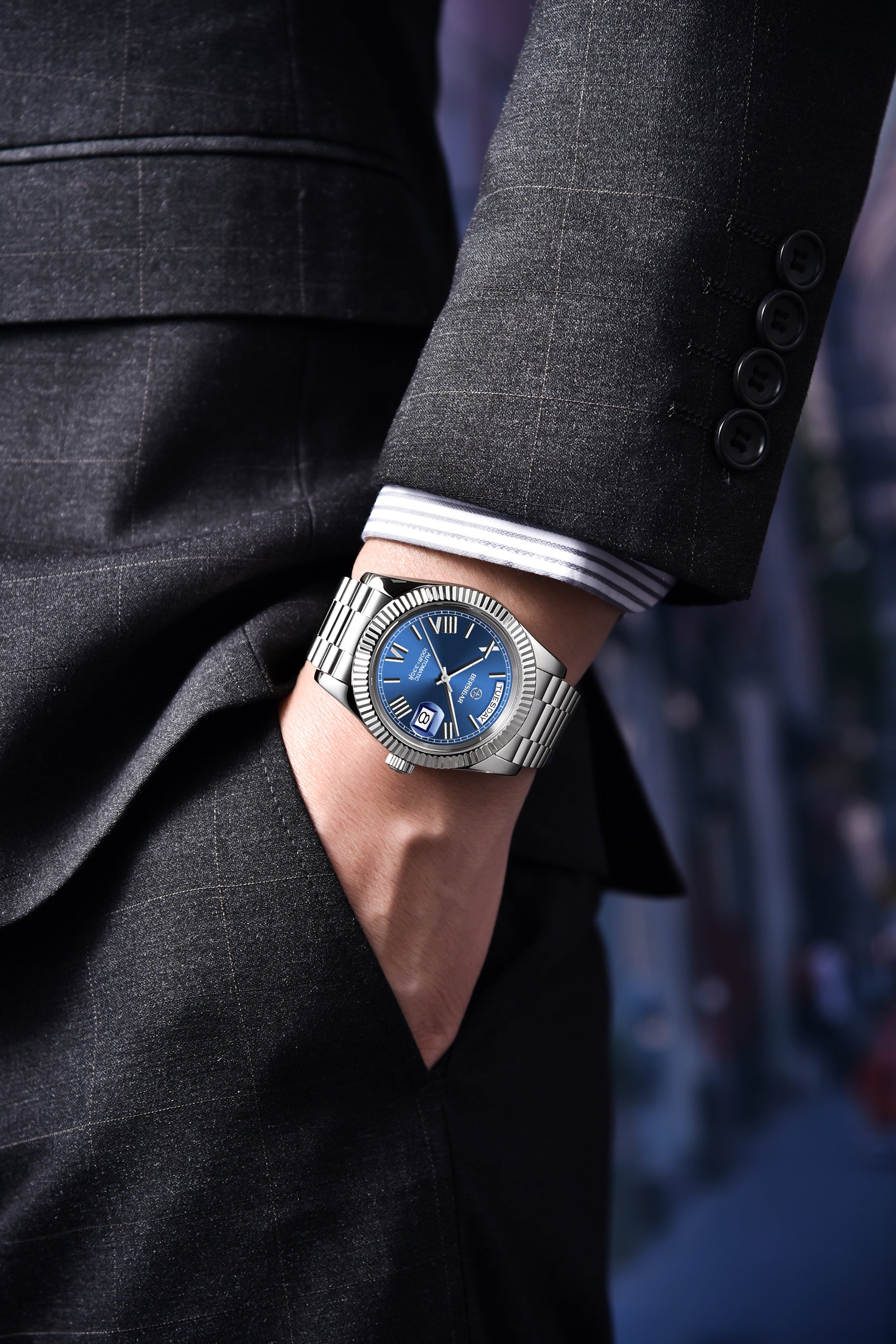 Kwaliteit SEIKO NH36A automatische mechanische beweging, zeer nauwkeurige tijdweergave, zelfopwindend, en de kracht van de veer kan meer dan 30 uur reserveren. De architectuur, fabricage en innovatieve kenmerken maken het uitzonderlijk precies en betrouwbaar