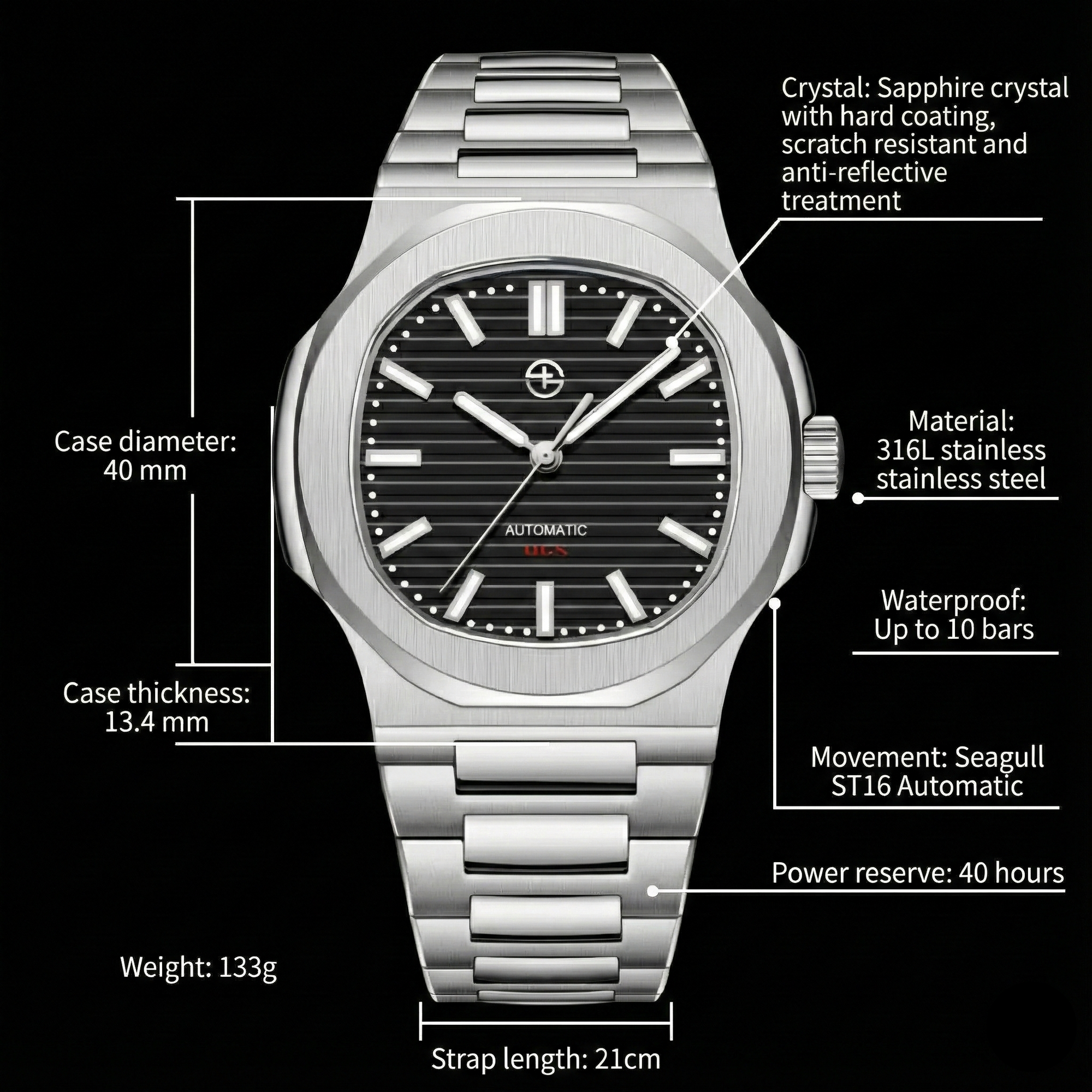 13 MM Thickness of the watch.